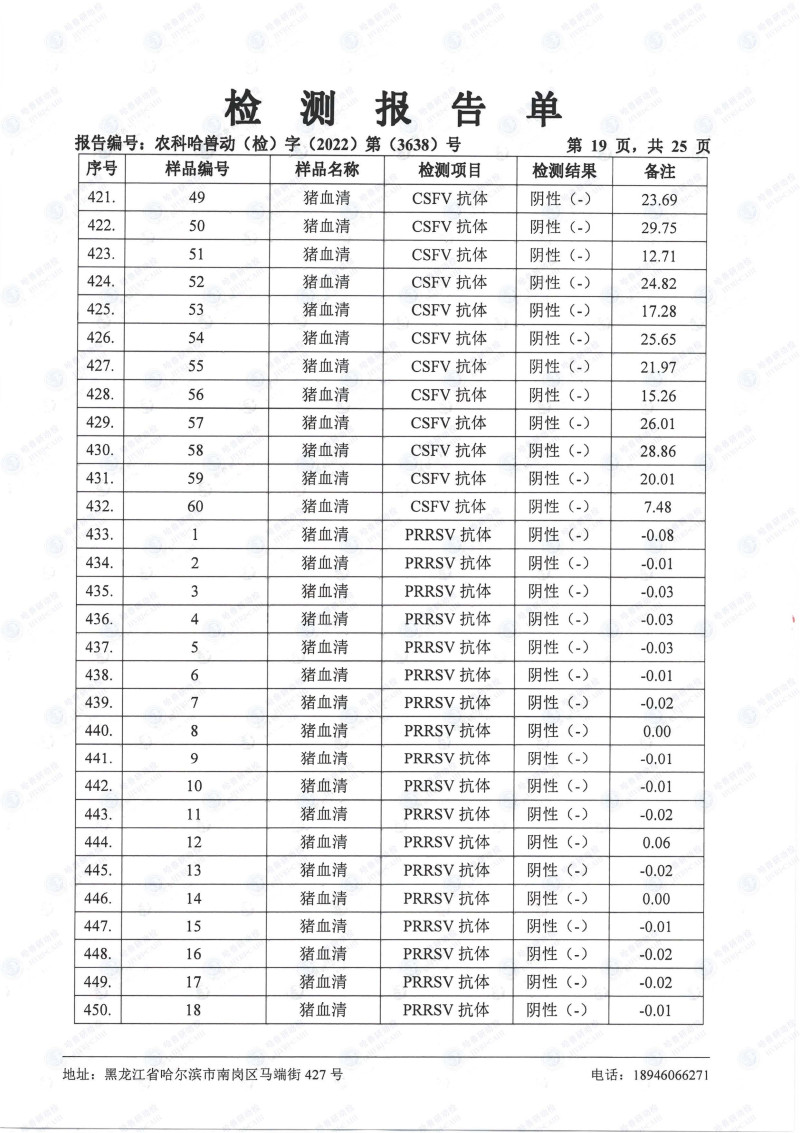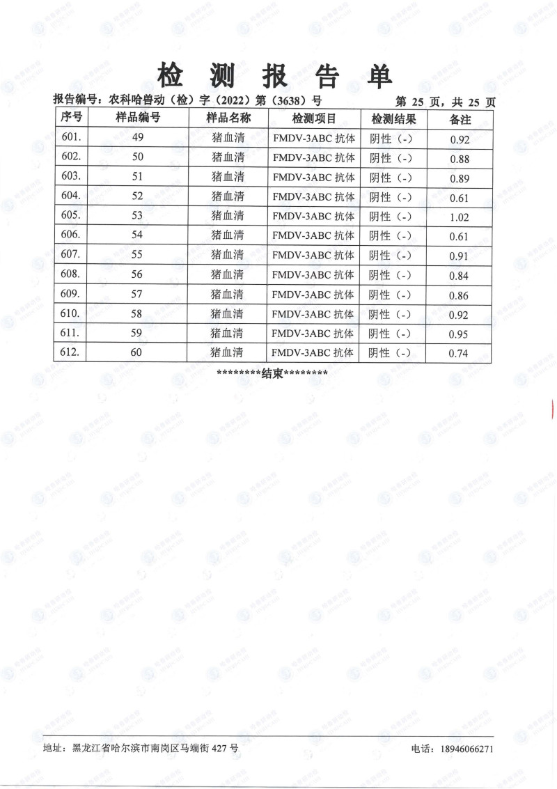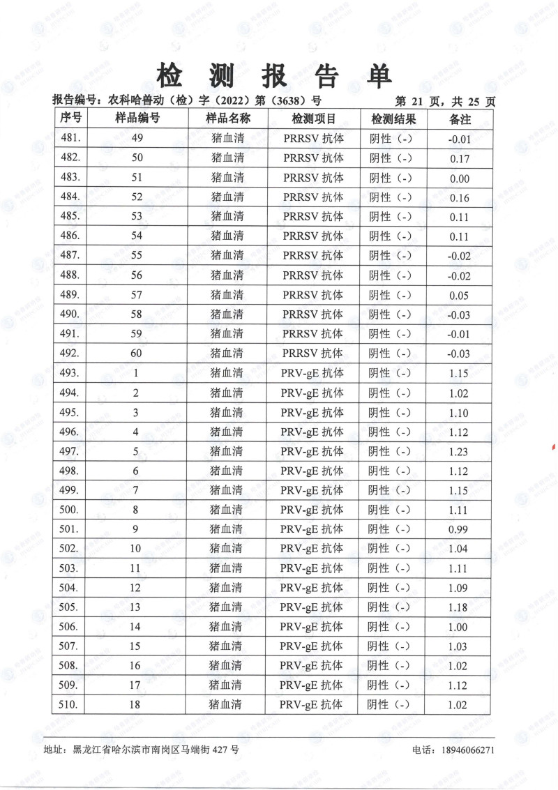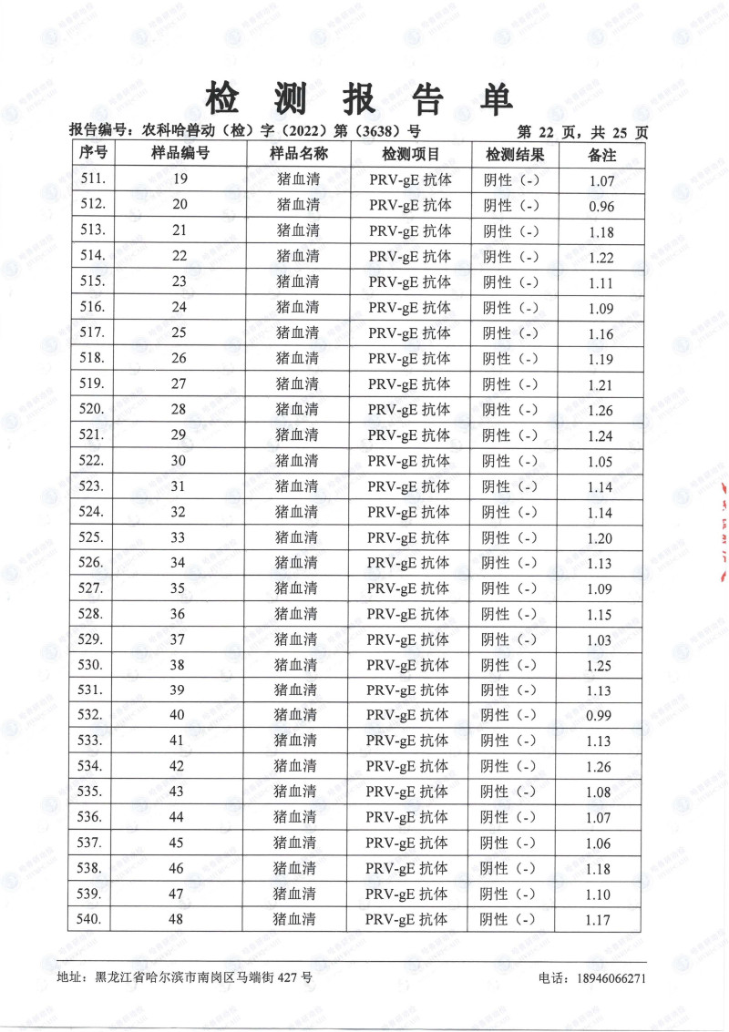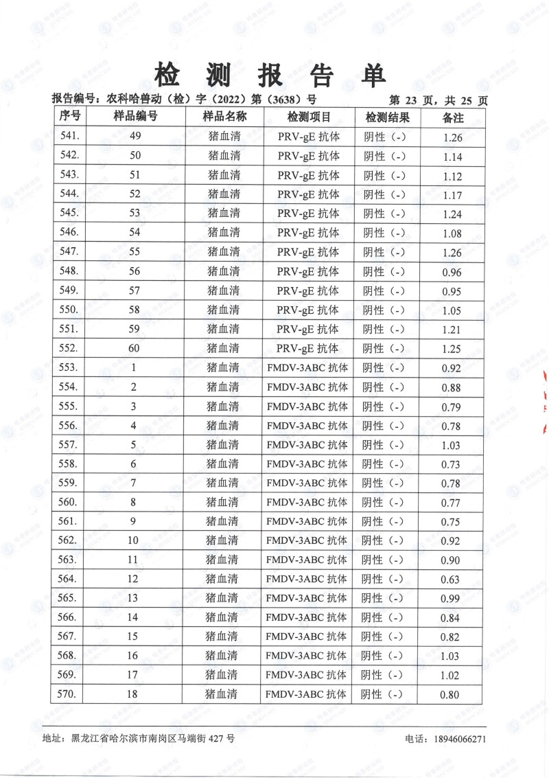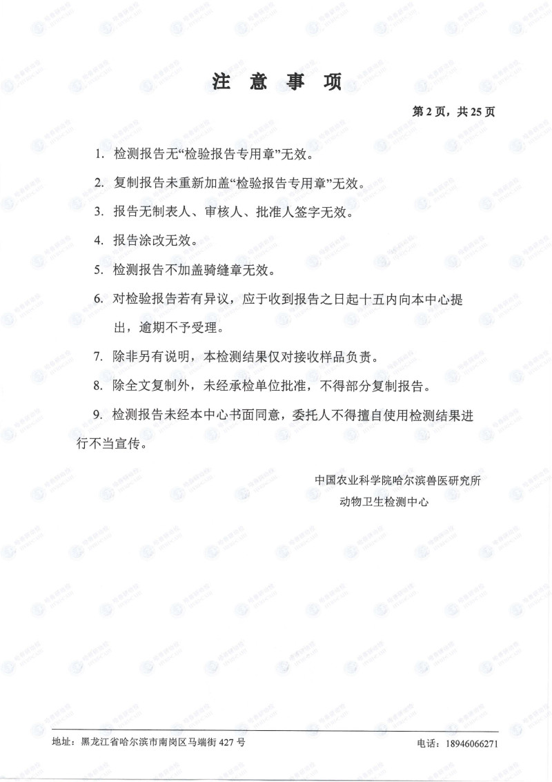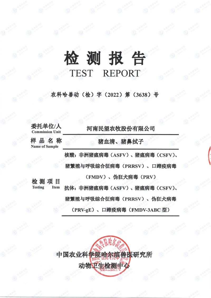 民望農(nóng)牧2022年10月份中國(guó)農(nóng)業(yè)科學(xué)院哈爾濱獸醫(yī)研究所檢測(cè)報(bào)告