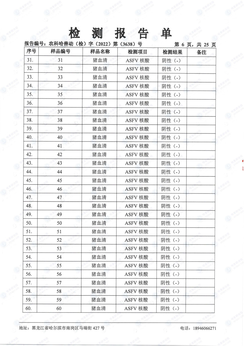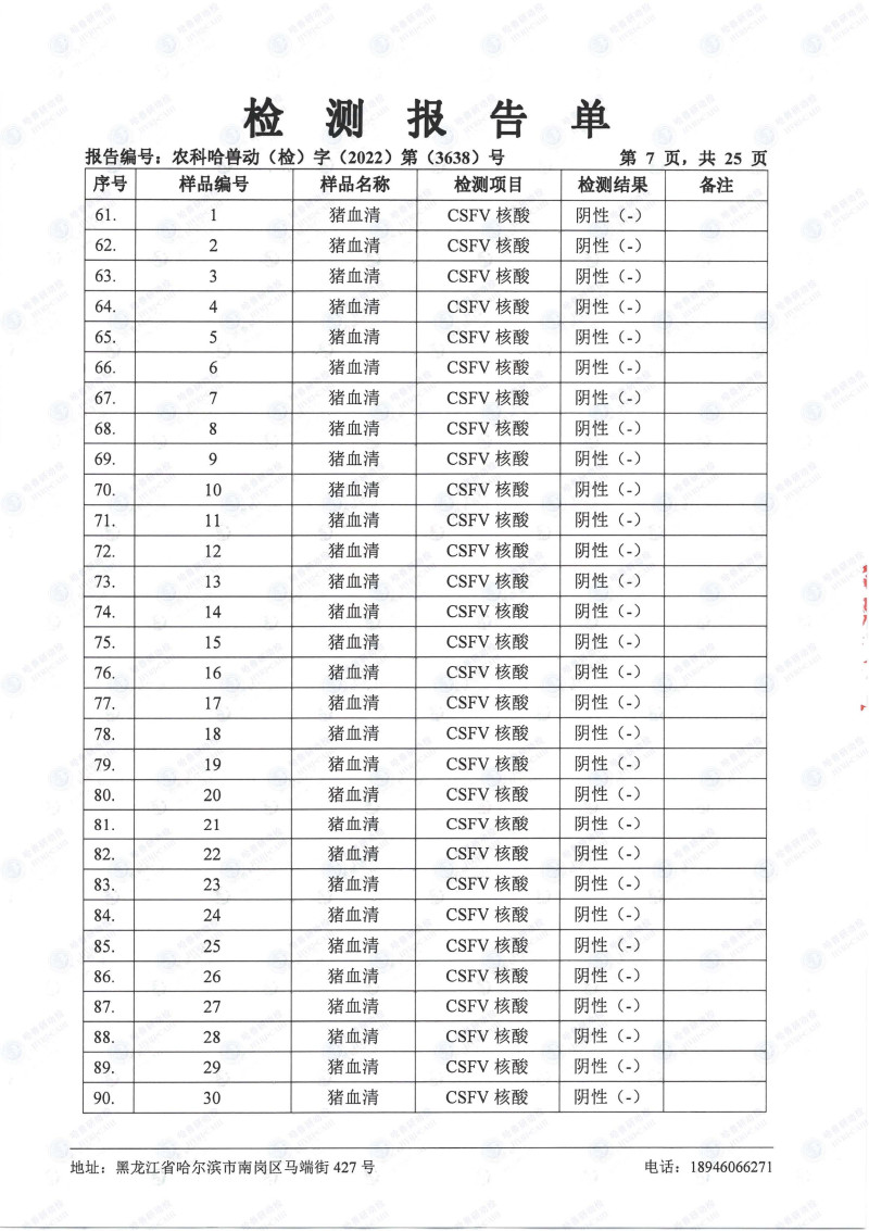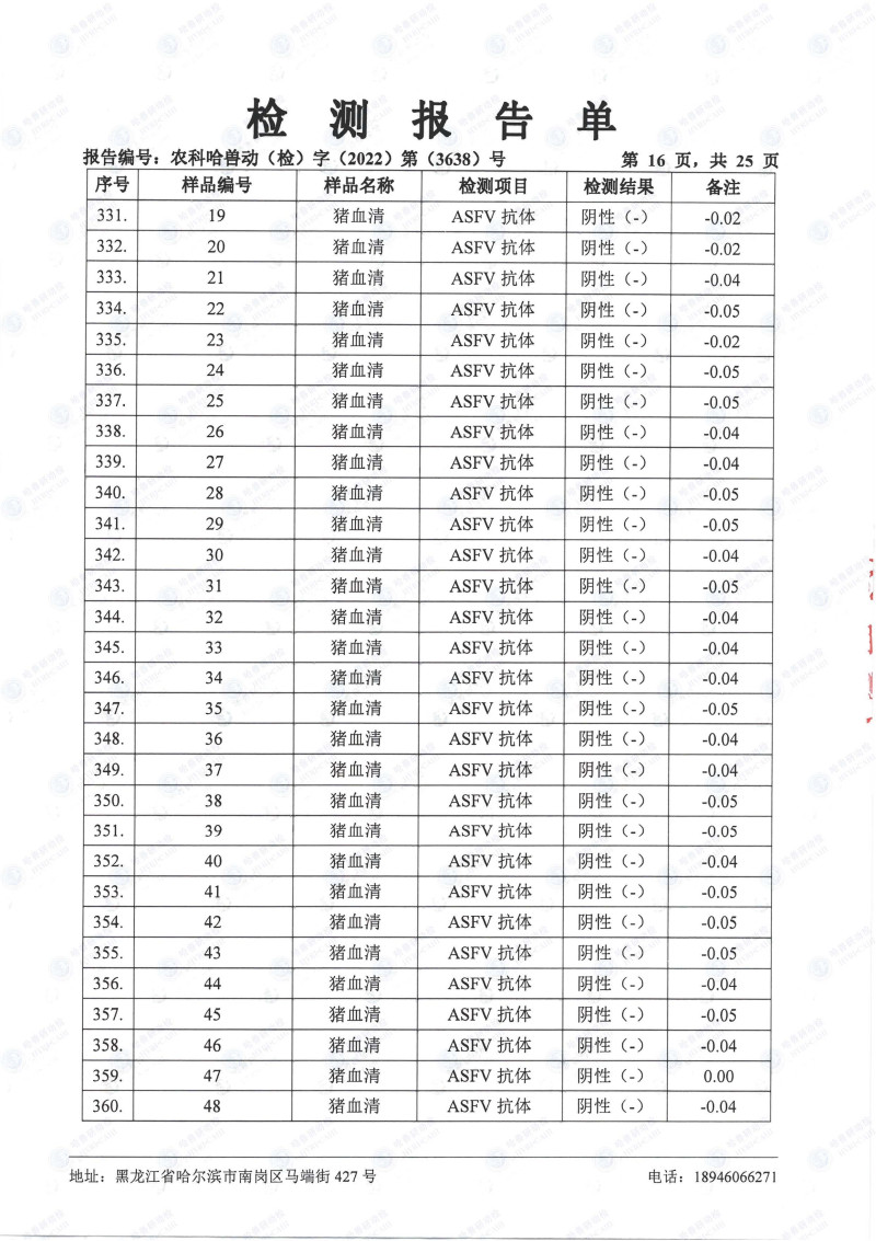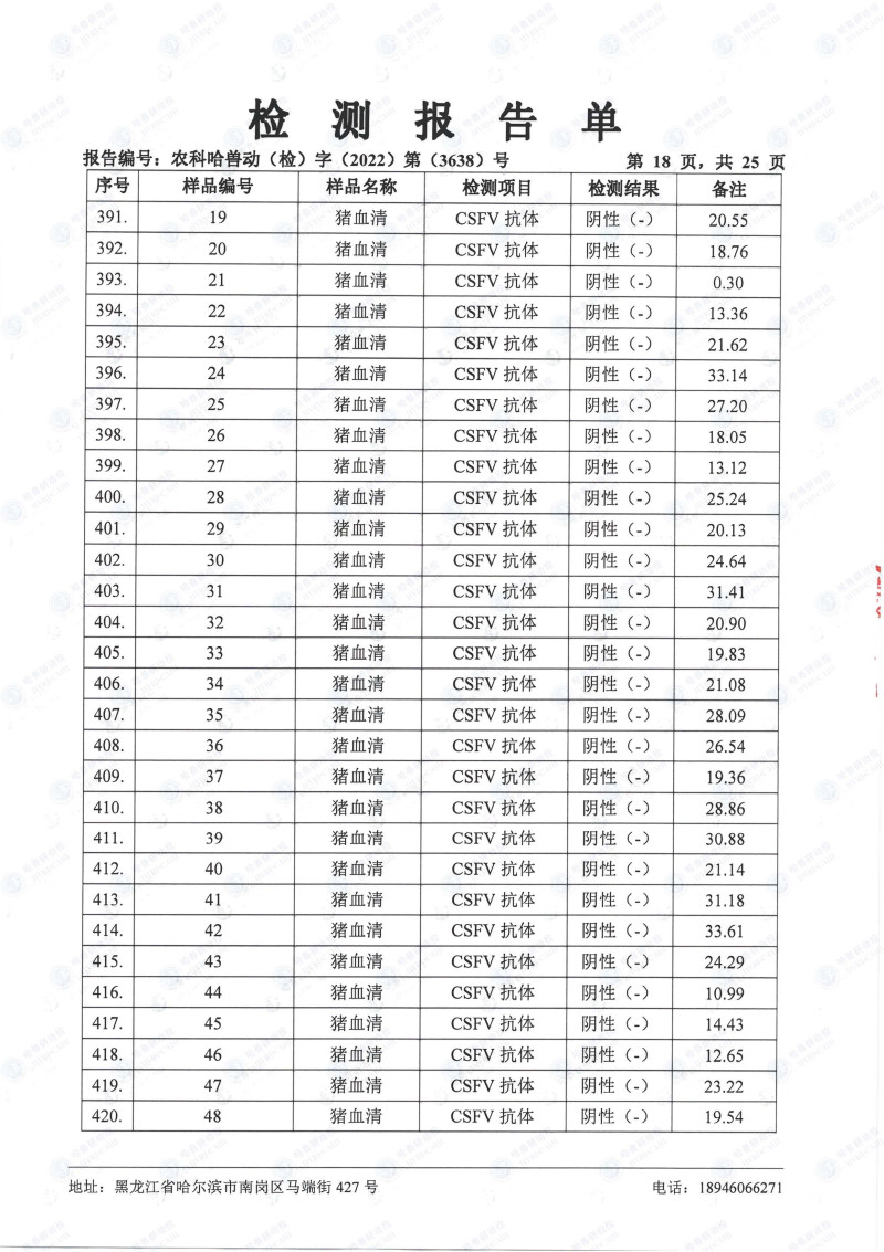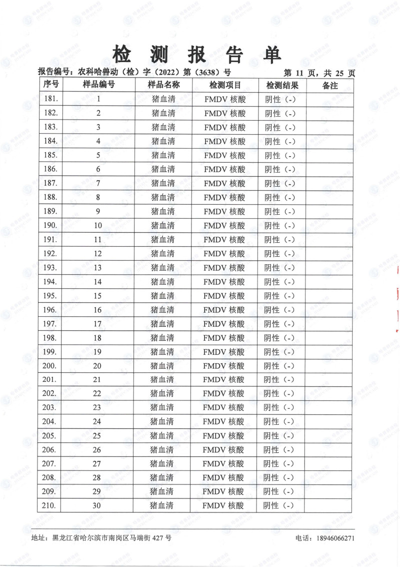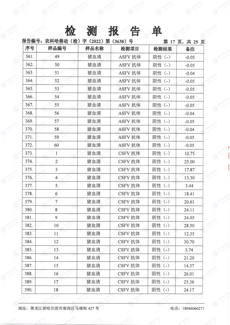 民望農(nóng)牧2022年10月份中國(guó)農(nóng)業(yè)科學(xué)院哈爾濱獸醫(yī)研究所檢測(cè)報(bào)告