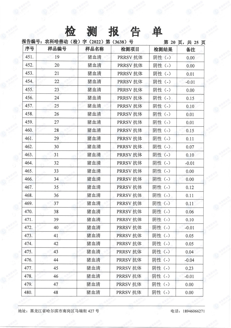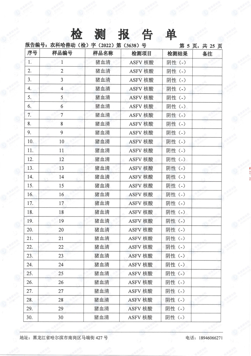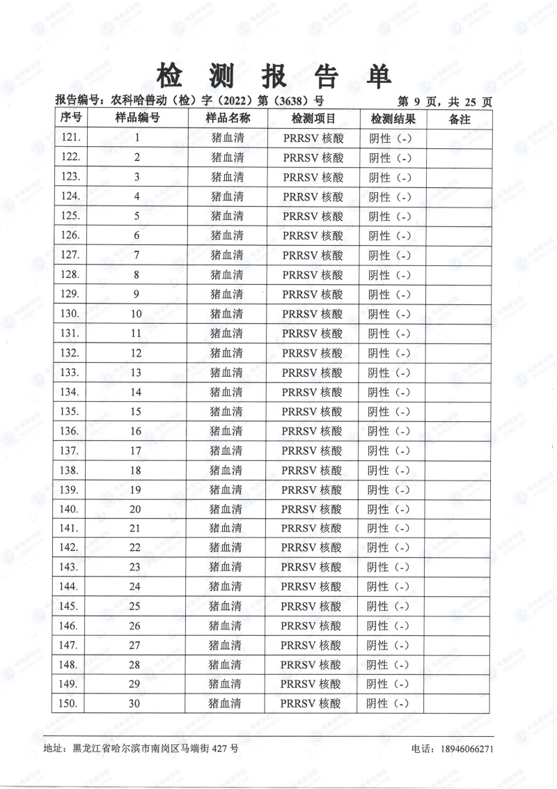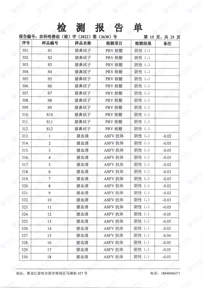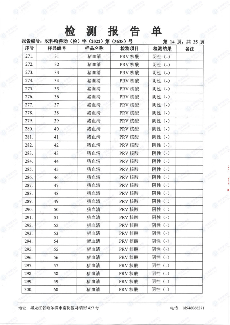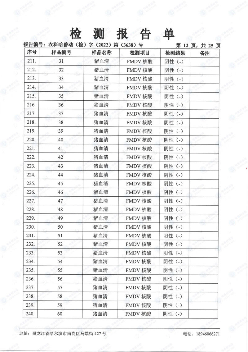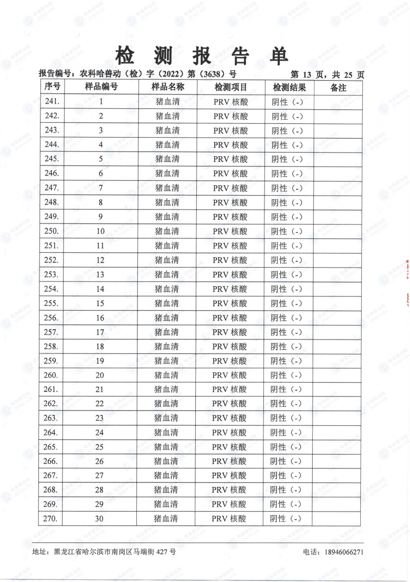 民望農(nóng)牧2022年10月份中國(guó)農(nóng)業(yè)科學(xué)院哈爾濱獸醫(yī)研究所檢測(cè)報(bào)告
