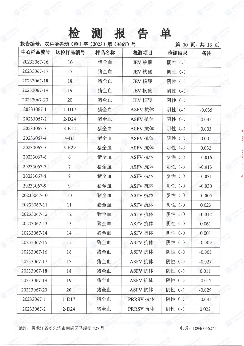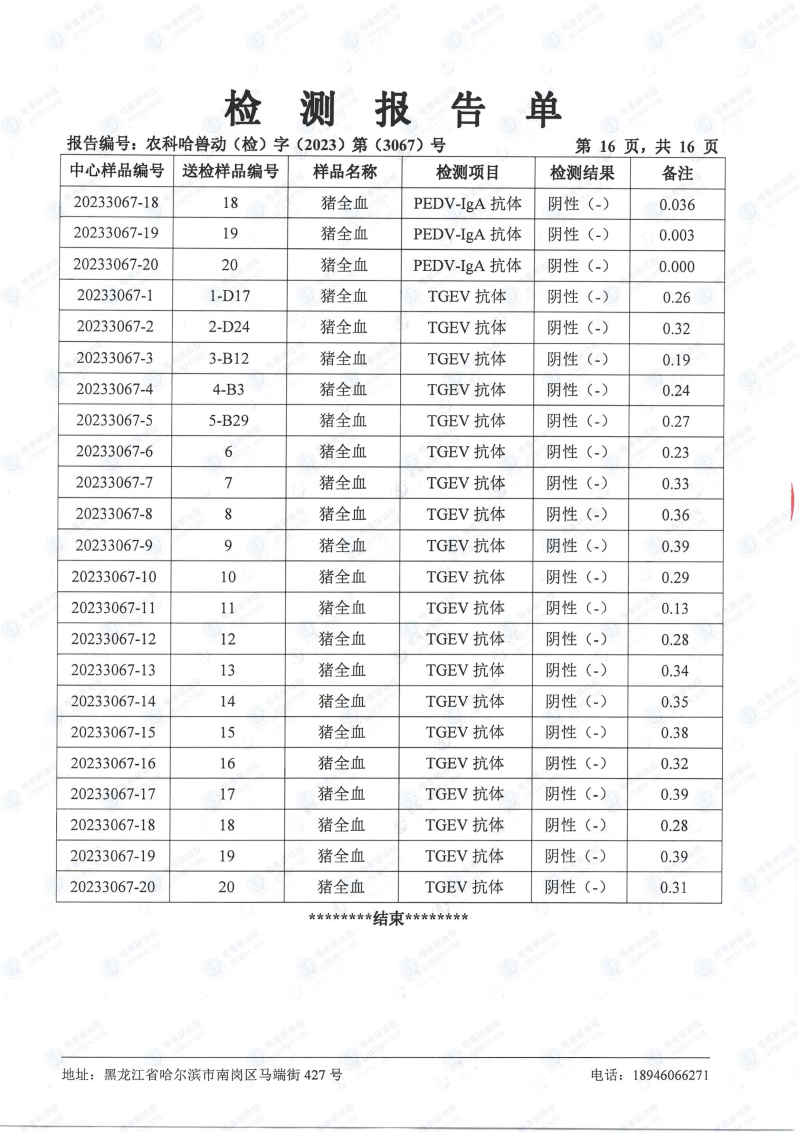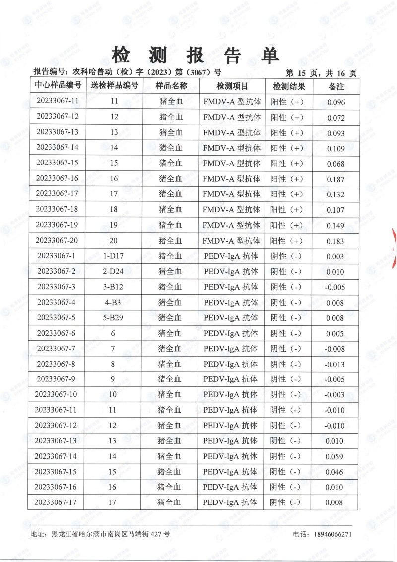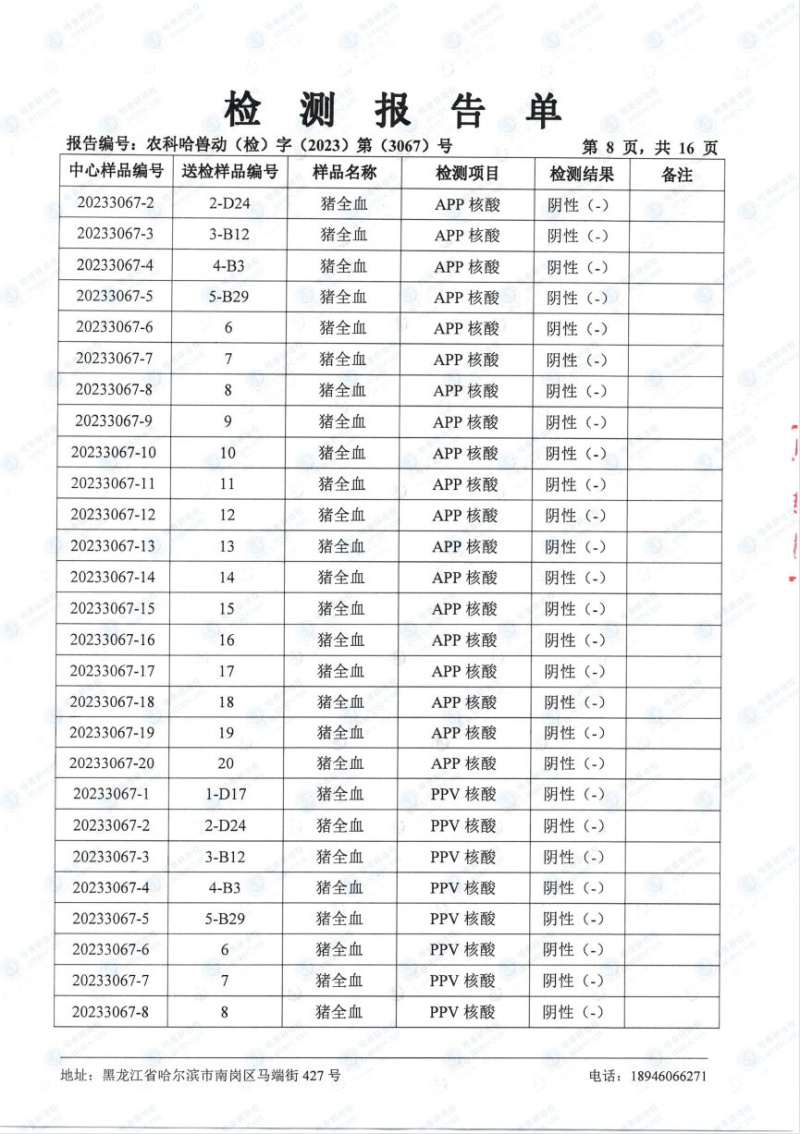 民望農牧2023年8月份送哈獸研檢測6項疫病雙陰
