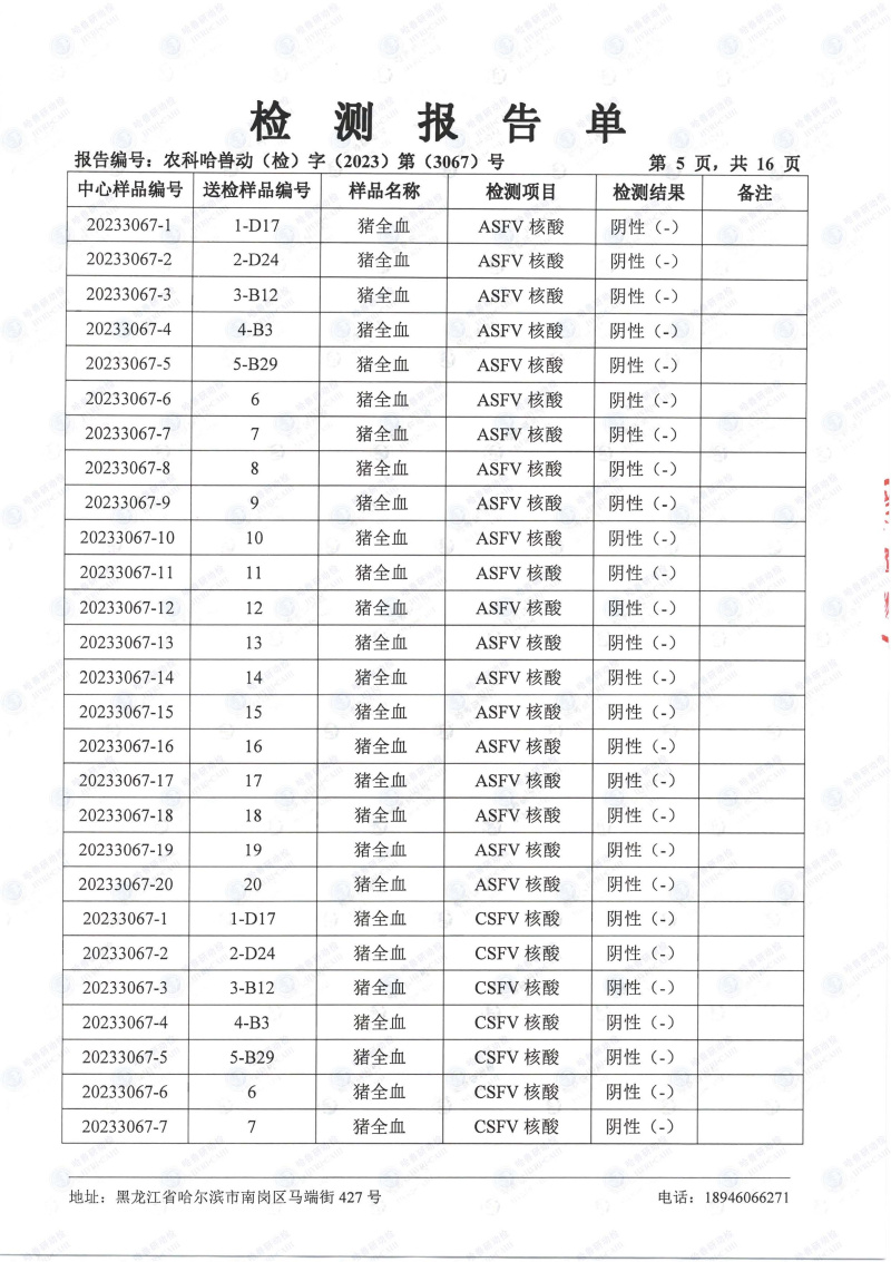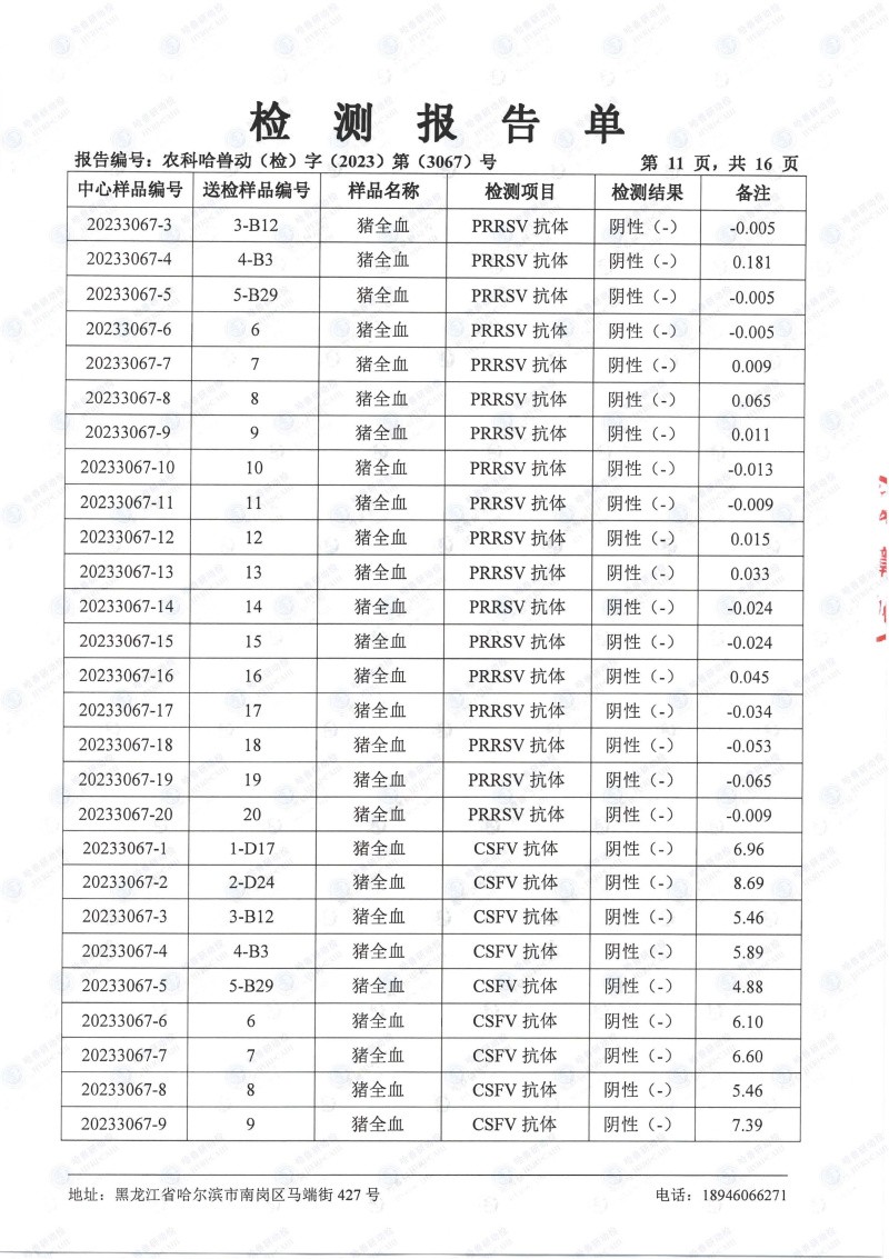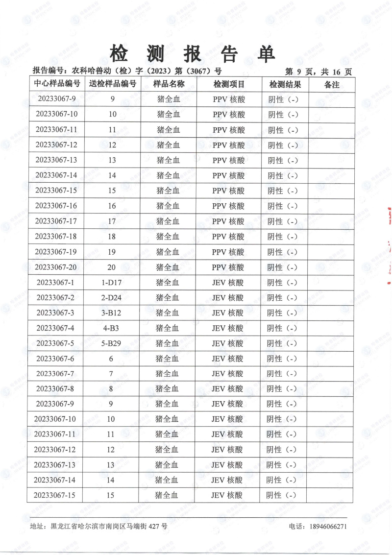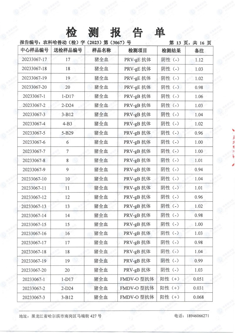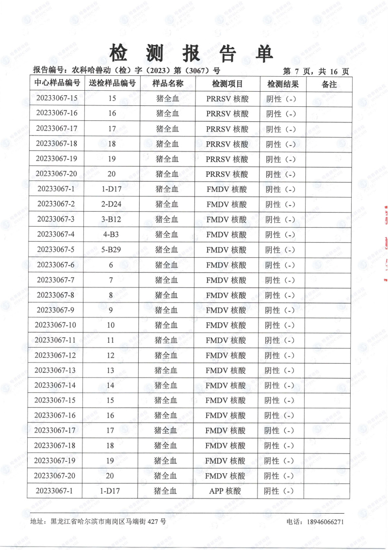 民望農牧2023年8月份送哈獸研檢測6項疫病雙陰