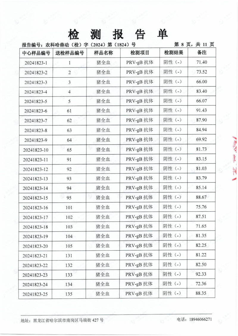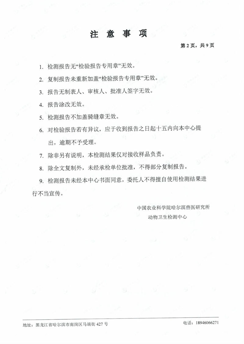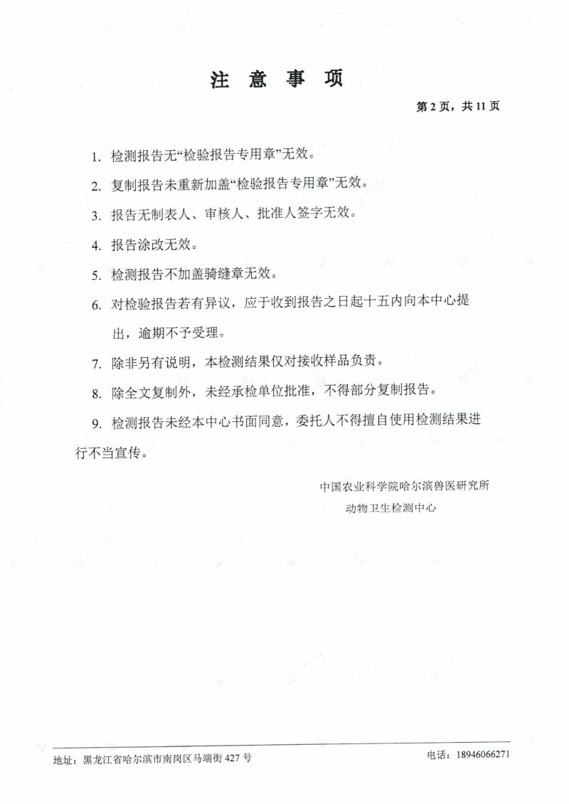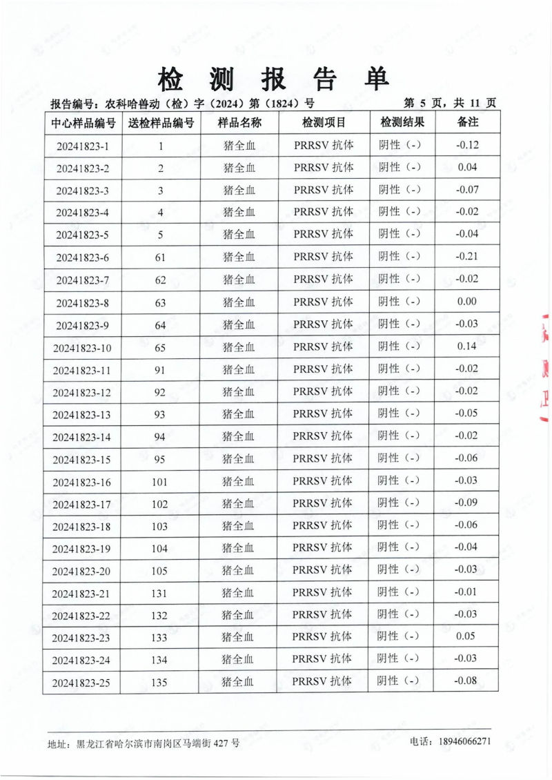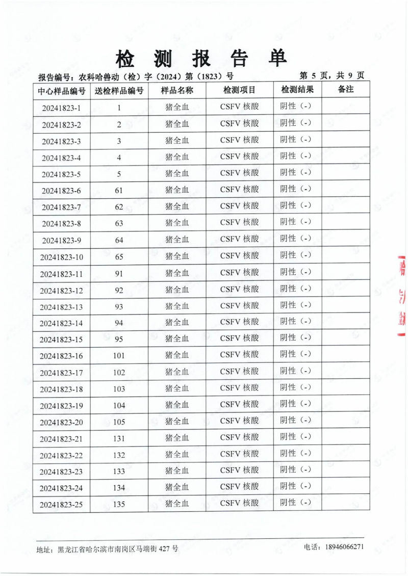 民望農(nóng)牧2024年4月份送哈獸研檢測6項疫病雙陰