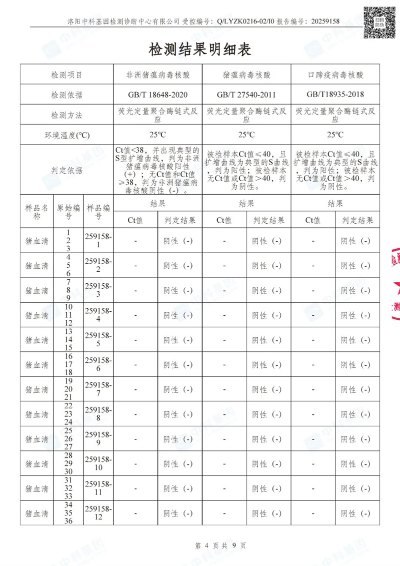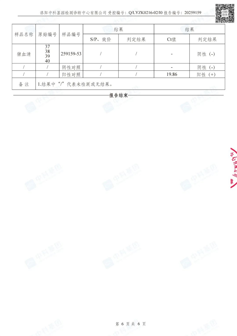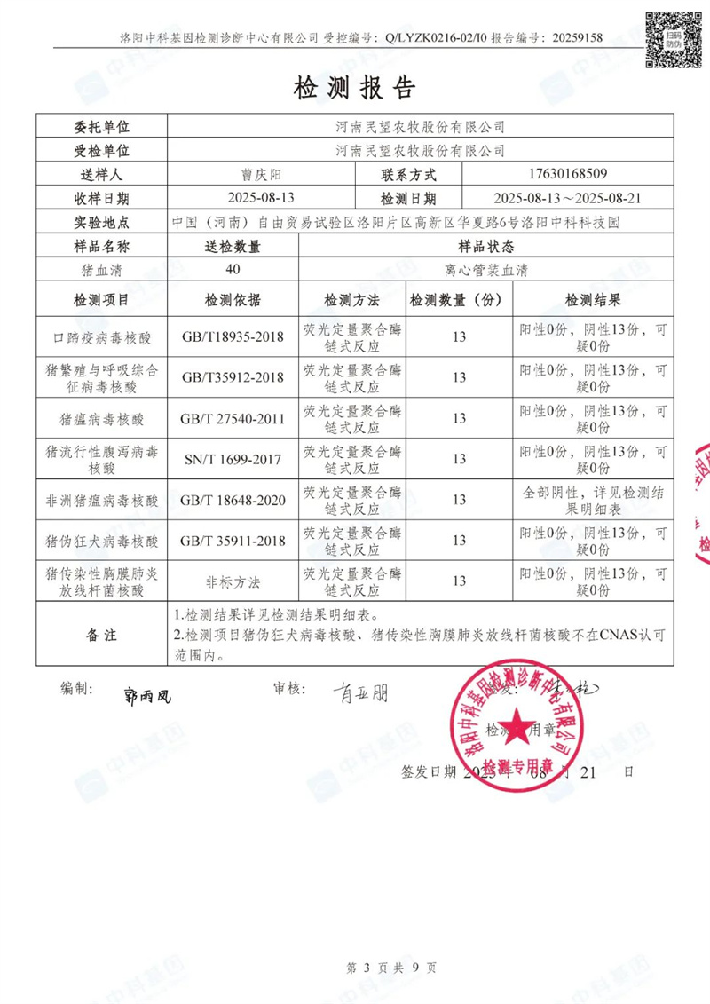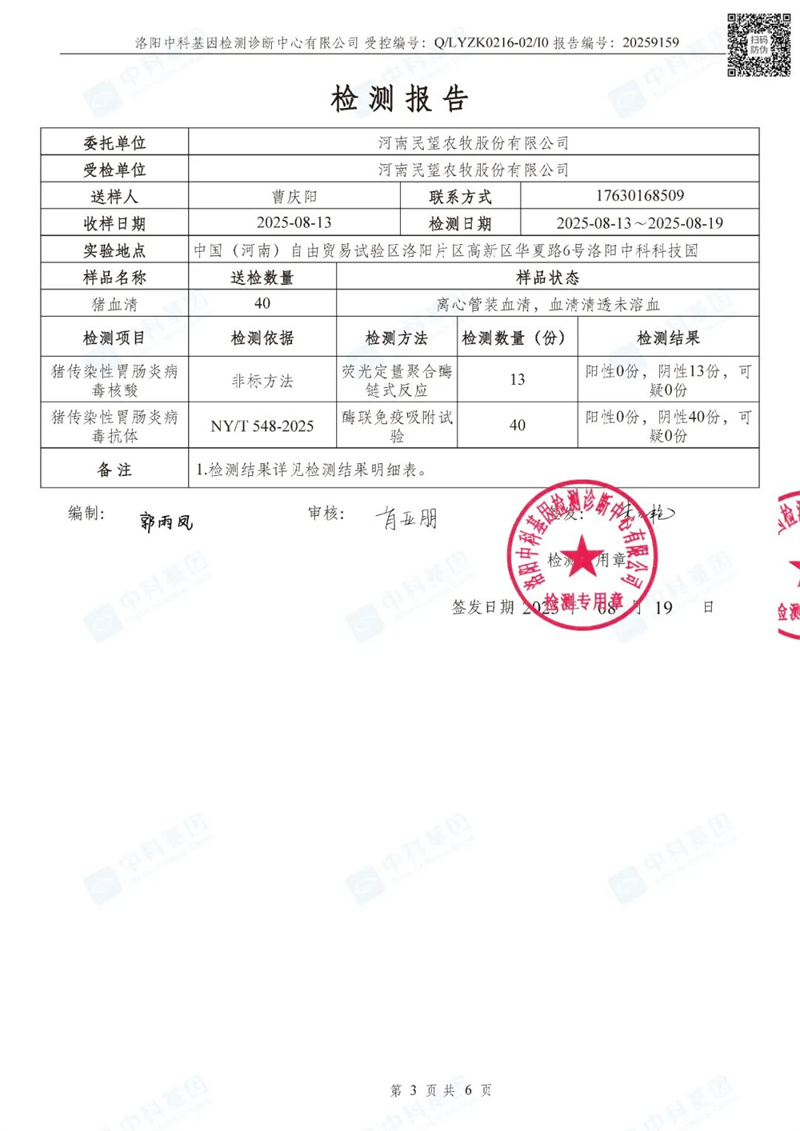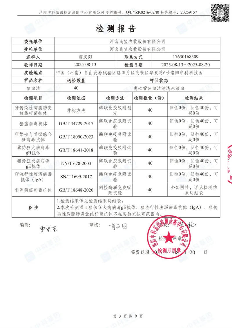 民望農(nóng)牧2025年8月份送中科基因檢測6項以上抗原抗體雙陰
