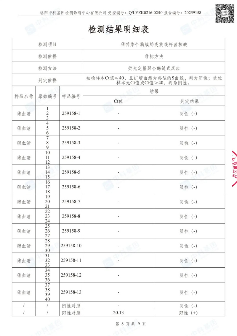 為確保各位合作伙伴引種安全,民望農(nóng)牧堅持自檢和第三方檢測,確保種豬及引種的各項指標(biāo)健康和安全,為合作伙伴把關(guān)生物安全,將風(fēng)險降到零,是我們民望人追求的安全生產(chǎn)目標(biāo)。關(guān)注民望農(nóng)牧公眾號,可持續(xù)查閱近期檢測結(jié)果,合作客戶可根據(jù)需求獲得相應(yīng)檢測報告!目前中科基因檢測項目如下:
