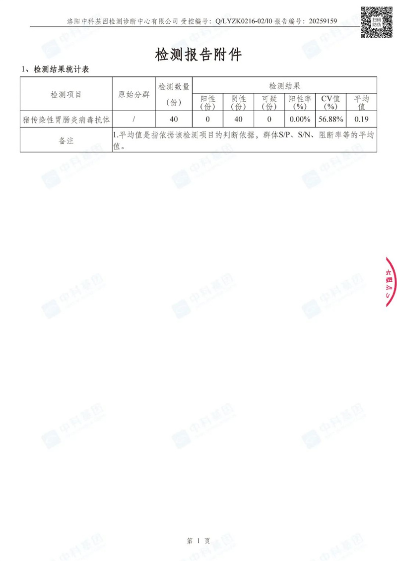 豬傳染性胃腸炎病毒核酸及抗體檢測,完整報告如下: