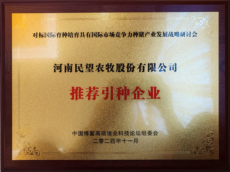 2024年11月17日,由中國種豬信息網(wǎng)&《豬業(yè)科學(xué)》超級(jí)編輯部主辦的對標(biāo)國際育種,培育具有國際市場競爭力種豬產(chǎn)業(yè)發(fā)展戰(zhàn)略研討會(huì)獲“優(yōu)秀種豬企業(yè)測定標(biāo)桿”“推薦引種企業(yè)”兩項(xiàng)大獎(jiǎng)。2024年6月30日,由南京農(nóng)業(yè)大學(xué)主辦的第八屆南農(nóng)豬業(yè)大會(huì)榮獲組委會(huì)評(píng)選的“2024年度先鋒品牌獎(jiǎng)”榮譽(yù)!