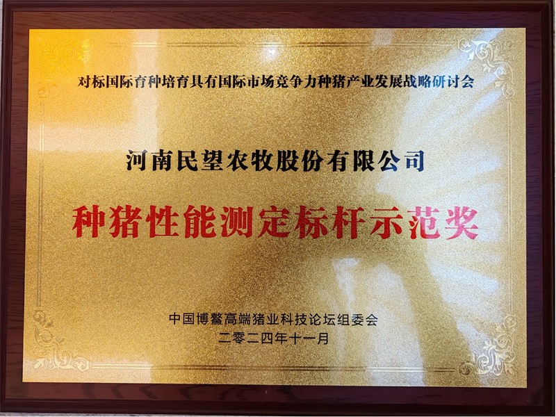 2023年1月獲農(nóng)業(yè)農(nóng)村部《畜禽養(yǎng)殖標(biāo)準(zhǔn)化示范場》。2023年2月獲第十二屆中國農(nóng)牧業(yè)風(fēng)云榜“2022年度種業(yè)振興貢獻(xiàn)企業(yè)”。2023年3月,獲”2022年中國豬業(yè)賦能榮耀榜-年度種業(yè)振興突出貢獻(xiàn)獎(jiǎng)“。2023年4月20日榮獲河南省省級(jí)豬偽狂犬病、豬瘟、豬繁殖與呼吸綜合征(非免疫)凈化場。2023年6月18日榮獲由華中農(nóng)業(yè)大學(xué)主辦的第五屆(2023)中國規(guī)豬場智造論壇“中國智造新勢力 2023 創(chuàng)新企業(yè)”獎(jiǎng)。2023年6月30日榮獲由南京農(nóng)業(yè)大學(xué)主辦的第七屆南農(nóng)豬業(yè)大會(huì)暨2023鐘山豬業(yè)展覽會(huì)“繁育之星”獎(jiǎng)。2023年7月榮獲由河南省生豬產(chǎn)業(yè)協(xié)會(huì)評(píng)選的“第二屆河南省畜禽種業(yè)發(fā)展突出貢獻(xiàn)企業(yè)獎(jiǎng)”。2023年9月15日榮獲由河南省家禽業(yè)協(xié)會(huì)主辦的第35屆中原畜牧業(yè)交易博覽會(huì)評(píng)選的“2023年度河南省畜牧業(yè)十佳品牌獎(jiǎng)”。